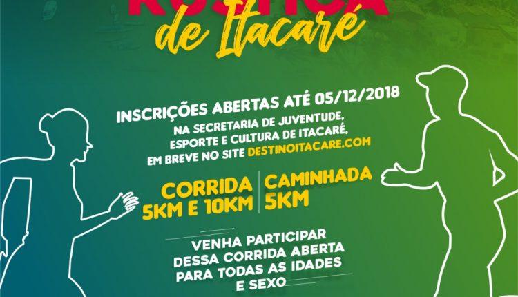 Os amantes da prática esportiva, em especial aqueles apaixonados por corrida de rua, tem um encontro marcado no próximo dia 09 de dezembro, em Itacaré. Trata-se da 1ª corrida de rua e caminhada rústicas, que acontecerá na praça São Miguel, percorrendo as ruas da cidade num clima de solidariedade, diversão, preservação ambiental e confraternização.