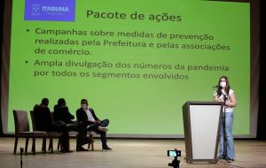 Depois de apresentar dados estatísticos de casos da Covid-19 e de vacinação de profissionais de Saúde e idosos, a secretária municipal de Saúde, Lívia Mendes Aguiar, apresentou o pacote de ações que inclui estabelecimento de novos protocolos para bancos, lotéricas, feiras, mercados, academias de ginástica, escolinhas de esporte e clubes sociais; parcerias para ponto de lavagem de mãos; gabinete itinerante, manutenção de blitzen para uso de máscaras e fiscalização.